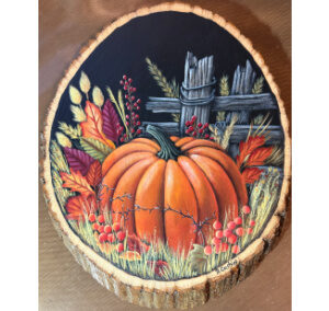 This is part of a seasonal series. There will be four altogether, this is the second one done so far. Autumn Time is also available. These are done on Wood Slices bought at Hoppy Lobby, but can be put on anything, the pattern can be adjusted to fit what you have. Painted with DecoArt Americana Acrylics. The packet contains; supply list, step by step instructions with a photo for each step, line drawing and finished photo.